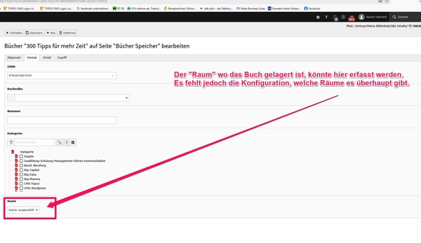 Der "Raum" wo das Buch gelagert ist, könnte erfasst werden.
